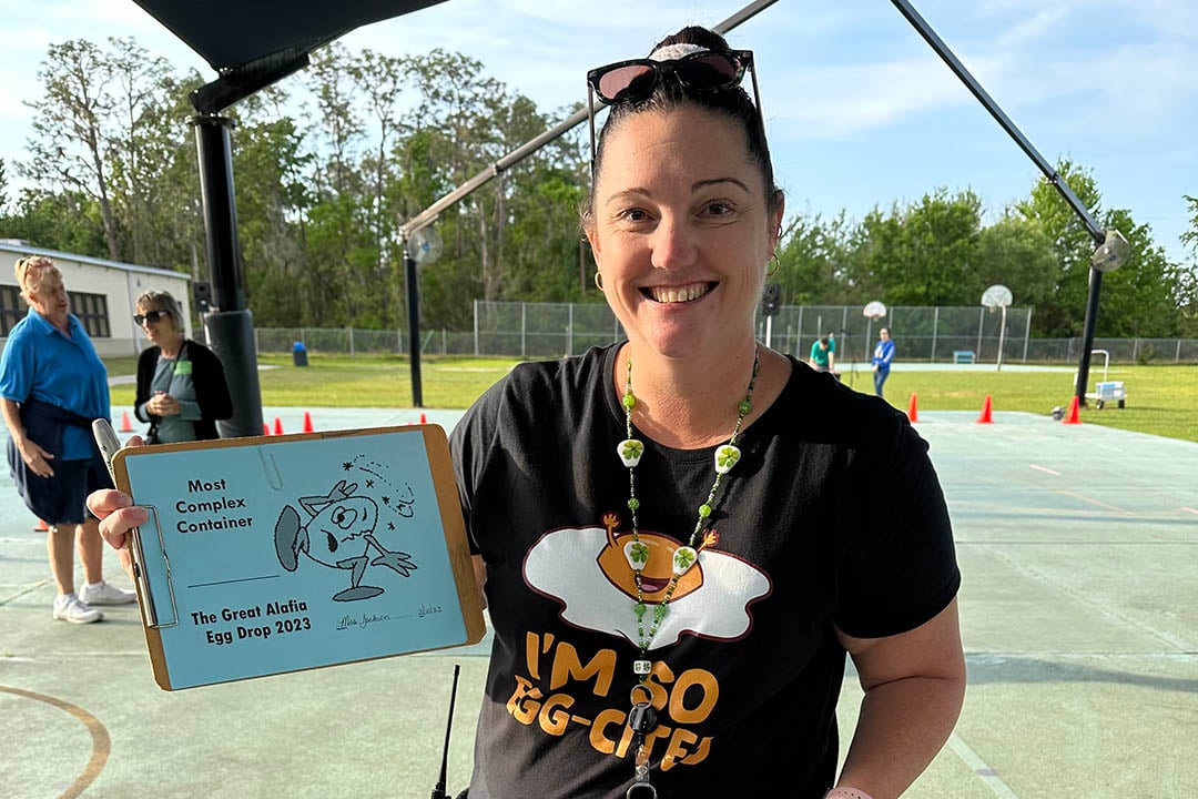 Gifted Math Teacher Abby Monteiro spearheaded the STEM egg drop competition at Alafia Elementary.