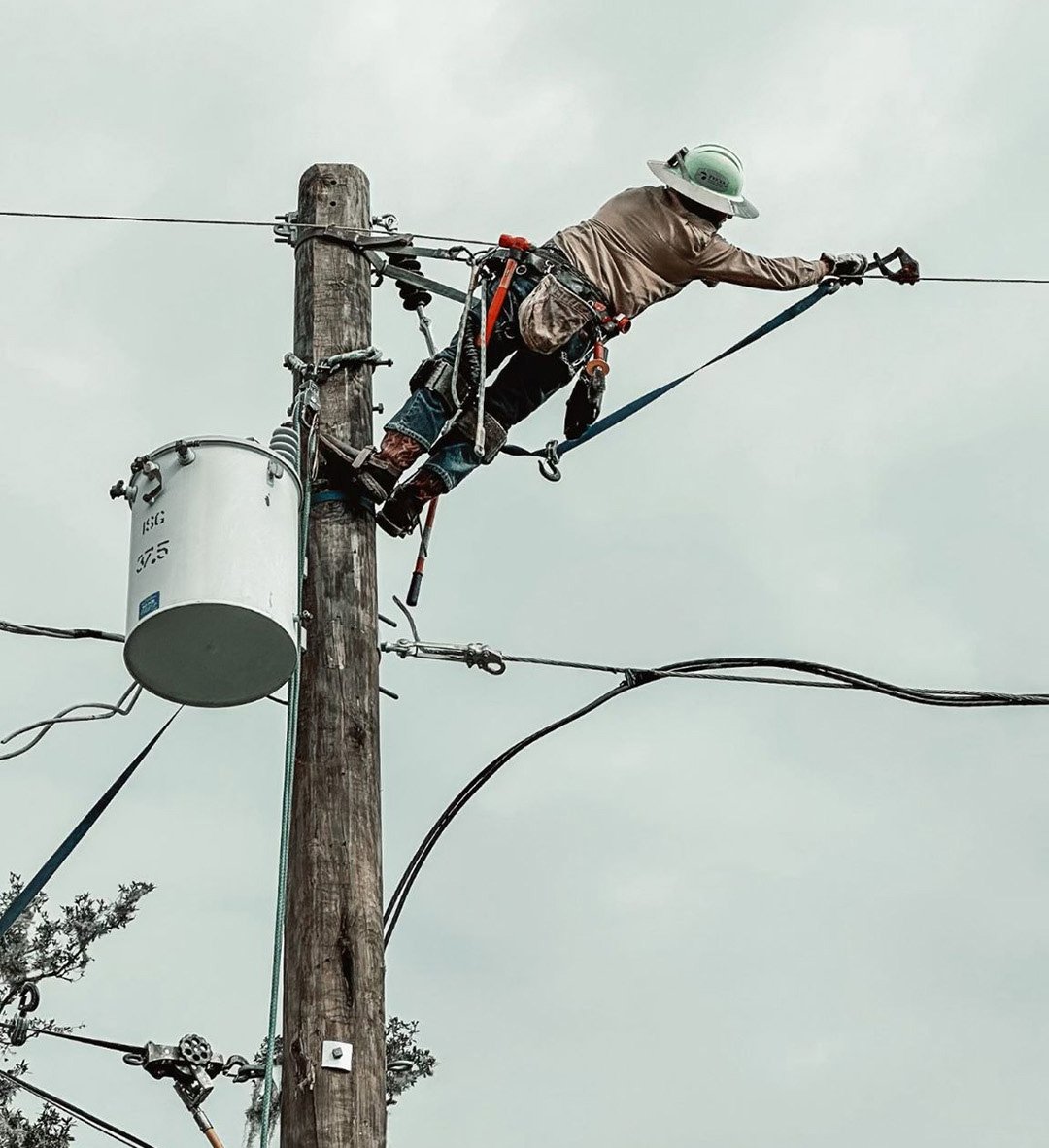 Utility worker restoring power.