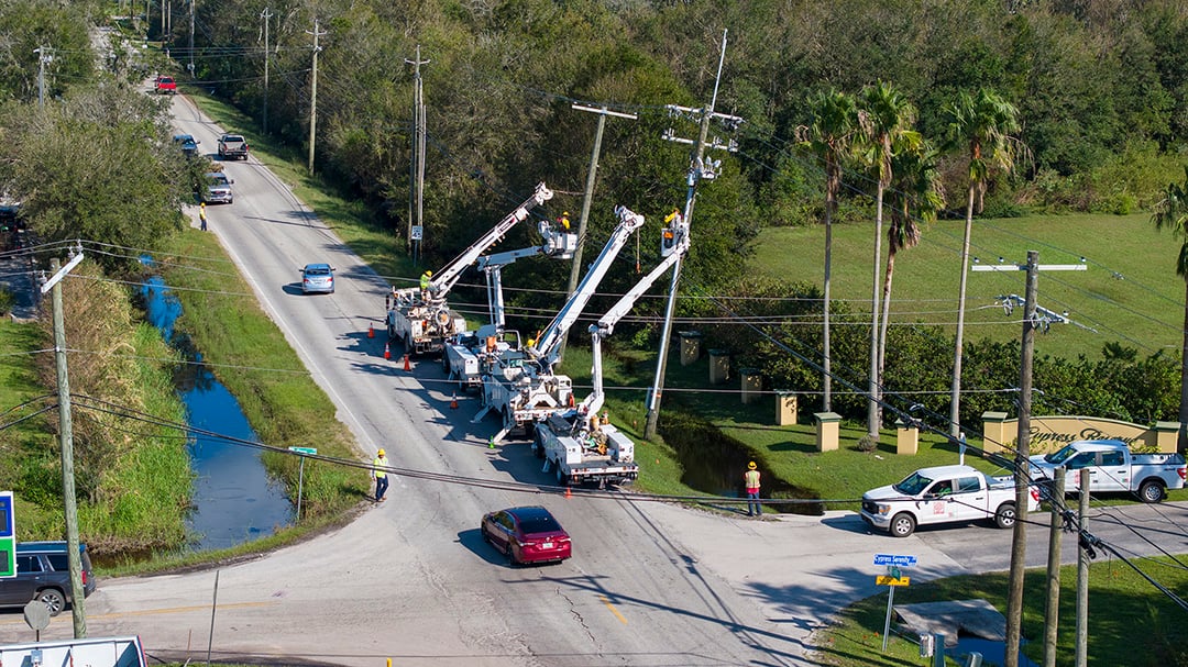 - Extensive damage in Pasco County added to the complexity of our restoration efforts. Our work involved not only restoring existing infrastructure but also fully rebuilding it. In one area of Dade City, for example, the team replaced multiple poles and installed at least five miles of feeder wire. While initial damage assessments indicated restoration by Monday to Pasco County, the teams on the ground encountered more extensive damage from extreme winds, which appeared tornado-like in nature.
