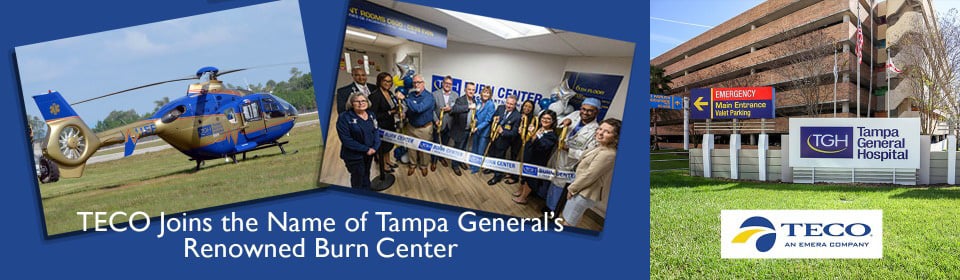 Tampa General Hospital has officially renamed its highly regarded burn center to honor its longstanding partnership with Tampa Electric. Following a generous gift of our shareholder funds to the TGH Foundation, the center is now the TGH Burn Center: A TECO Partnership.